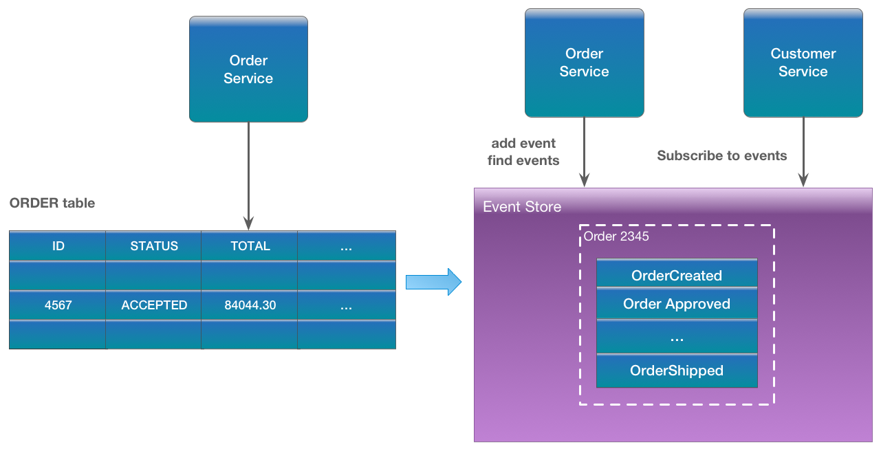 Одной из главных отличительных черт Event Sourcing является то‚ что вместо хранения данных в традиционных базах данных‚ мы храним события‚ которые представляют изменения. Это означает‚ что вся информация о том‚ как состояние системы пришло к своему текущему значению‚ доступна и может быть восстановлена в любой момент.