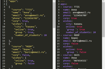 - Гибкость: JSON поддерживает различные структуры данных, включая объекты и массивы.